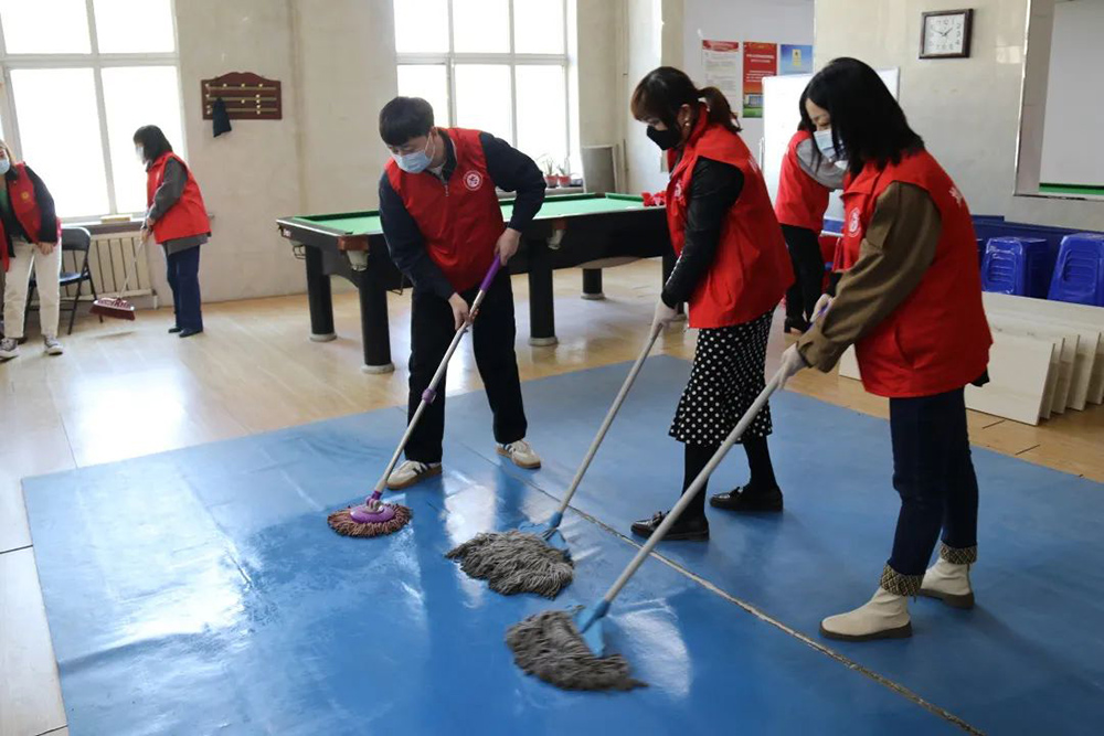 此次活動圍繞清掃社區(qū)居民活動室展開。下午1點(diǎn)30分,航空集團(tuán)25名黨員及入黨積極分子準(zhǔn)時(shí)到達(dá)美地社區(qū),大家迅速穿上醒目的志愿者紅馬甲,分工合作起來。活動現(xiàn)場,志愿者們積極投入到清掃社區(qū)活動室地面、清除衛(wèi)生死角、擦拭公共展板等工作中。此外黨員志愿者們在社區(qū)工作人員的帶領(lǐng)下,搬桌子、掛條幅、擺凳子,圓滿完成美地社區(qū)即將召開黨員大會的前期布置工作。